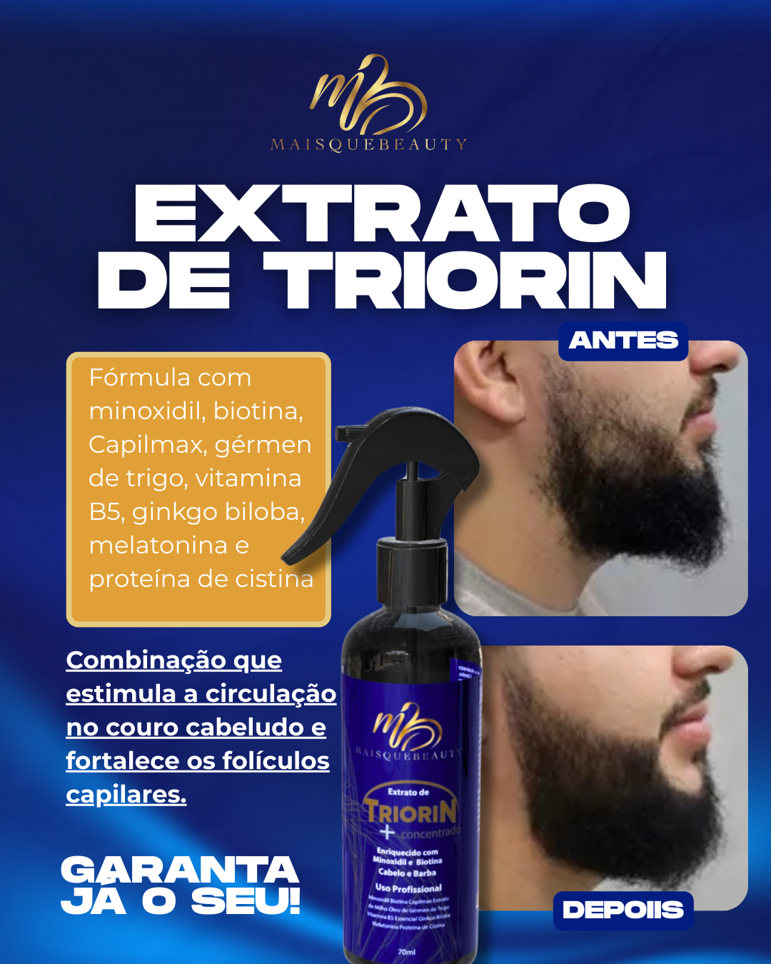 Produto desenvolvido para uso profissional, podendo ser aplicado em protocolos capilares, tratamentos antiqueda, fortalecimento capilar e estímulo de crescimento.
